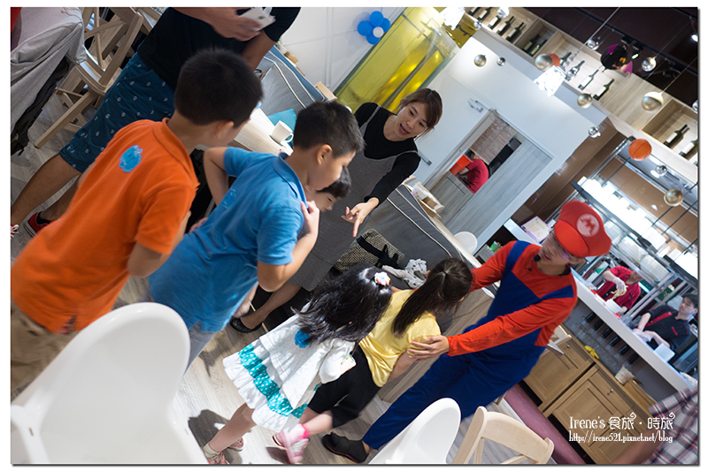 用餐用到一半突然有活動,變裝的工作人員帶著小朋友一起遊戲,活潑有趣,