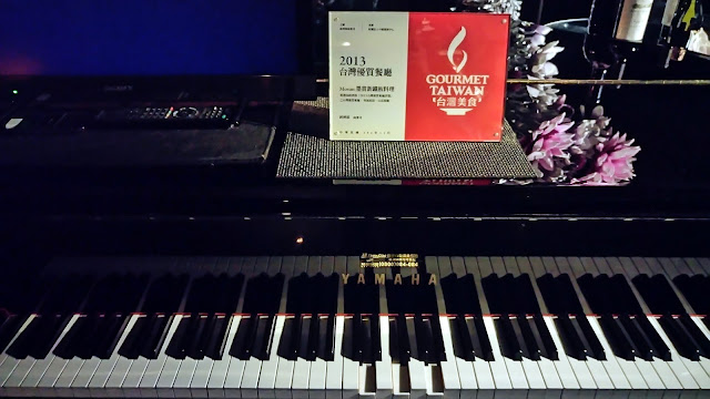 鋼琴上還擺了一個經濟部2013台灣優質餐廳的獎狀。