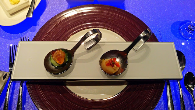 ▼再來是開胃菜 - 和風干貝和香橙佐鴨胸,