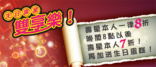 註:國曆生日當天+往前和往後推算3天內生日,方享有此優惠,不與其他優惠再同時合併使用。