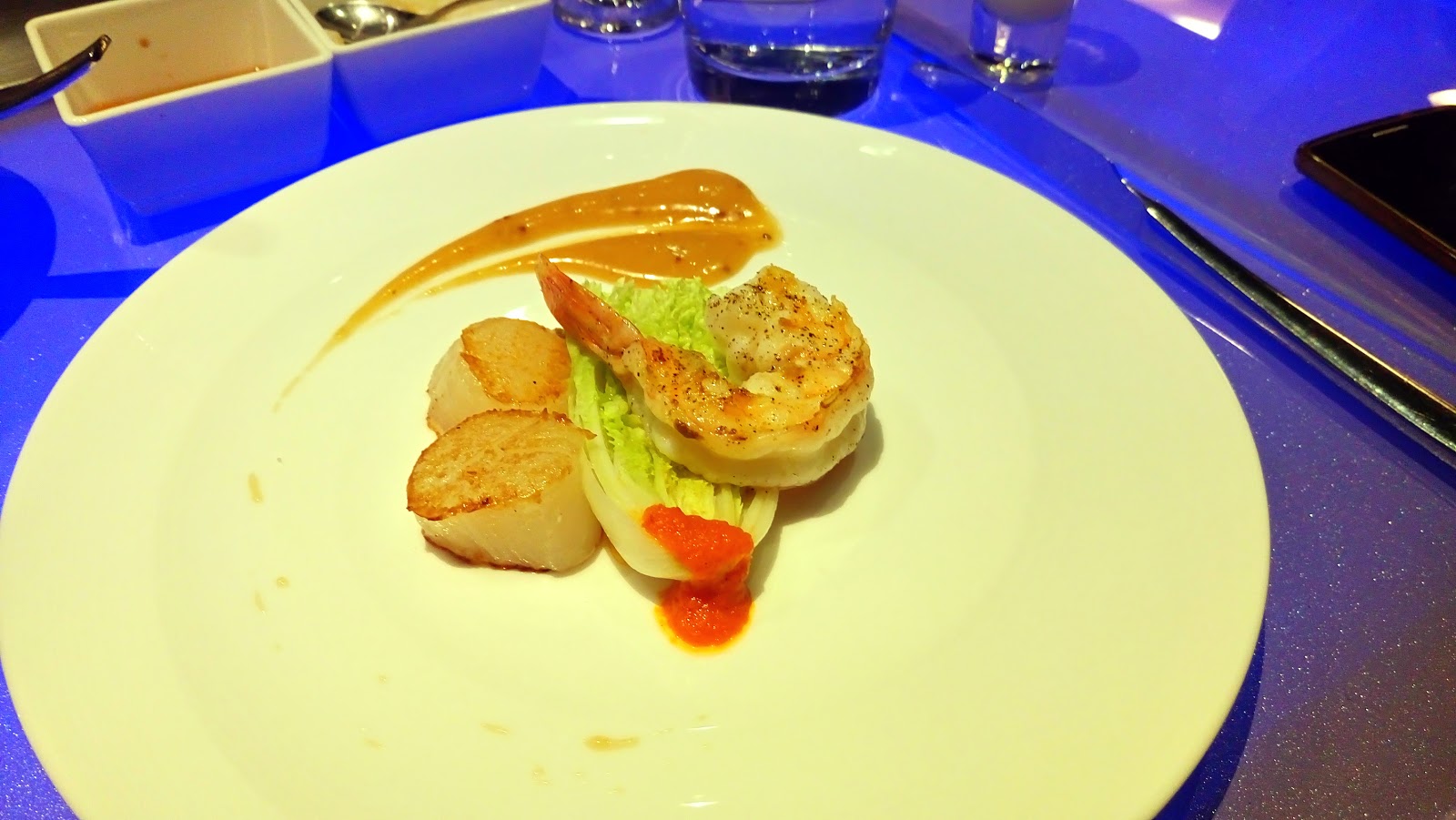 ▼野生明蝦和北海道干貝,剛剛開胃菜干貝不夠過癮呀! 煎的香酥帶鹽的干貝和明蝦,這道菜我覺得比後面的牛排還好!