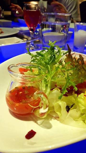 一開始先送上一小杯玫瑰蔓越莓醋和醬料,醋可以續加,