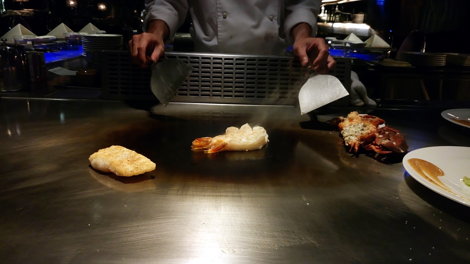 師傅開始煎明蝦啦! 旁邊還有別人的龍蝦,龍蝦拿上來時還是活的哩!