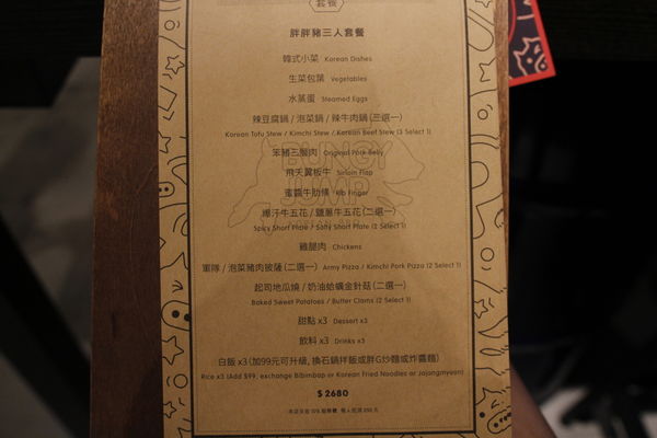 這是我們這次三人胖胖豬套餐的菜單↓