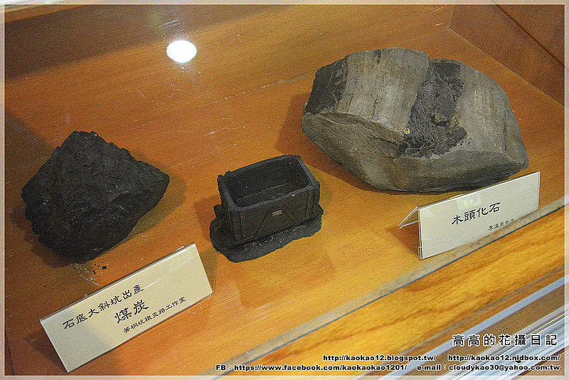 在這邊還有石底大斜坑出產的煤炭展示、木頭化石,以及過去的工資表等。