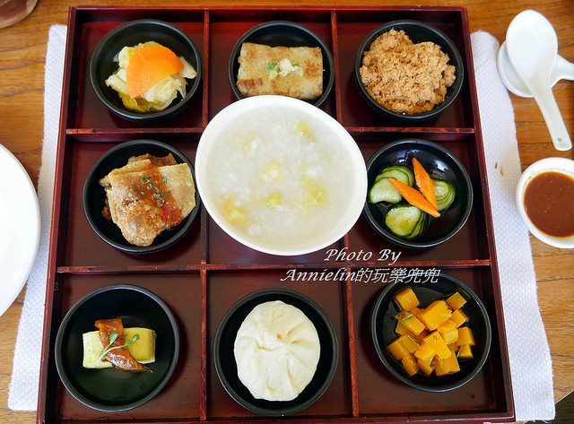行館的早餐我蠻喜歡的,九宮格的中式套餐,中間是地瓜粥,
