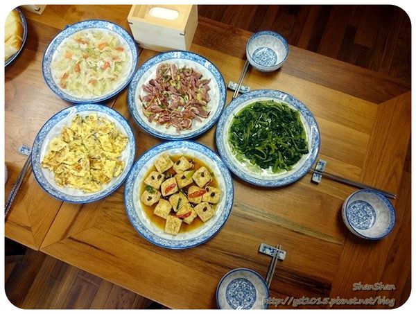 隔天,稀飯配菜的中式早餐,這桌約4人份,有宜蘭名產鴨賞喔。另外還有很甜的梨子和火龍果,也有烤麵包,營養又豐盛!吃得好開心!