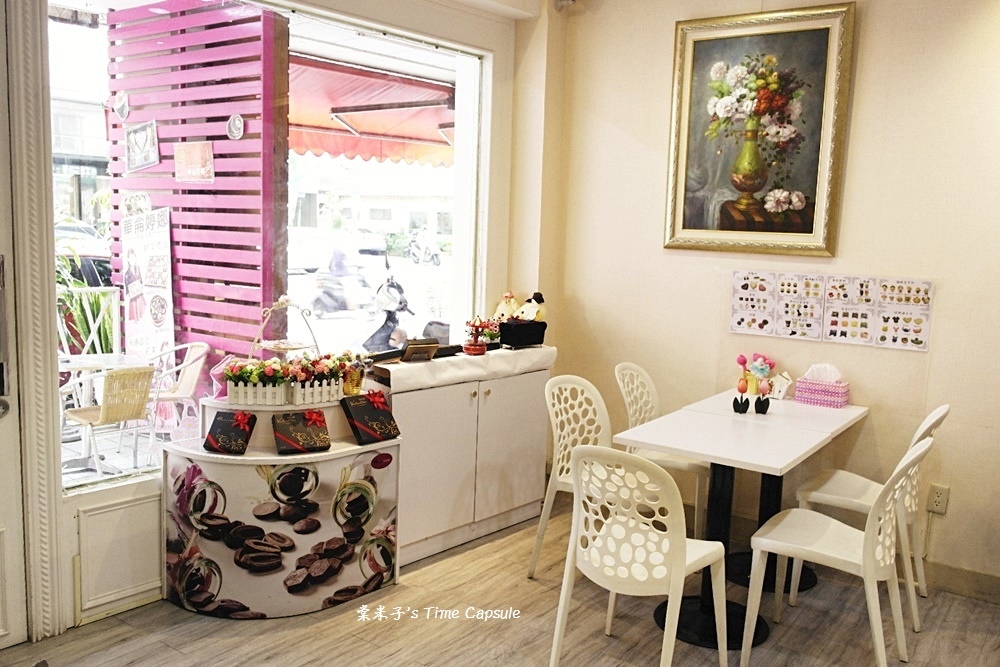 店裡還貼心地擺放了桌椅可以供客人試吃所感興趣的巧克力並予以介紹,