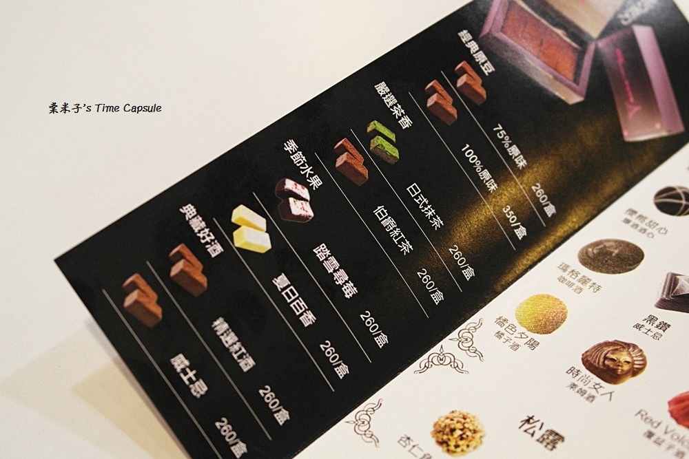 店裡的生巧有"經典原豆"、"嚴選茶香"、"季節水果"、"典藏好酒"4系列,