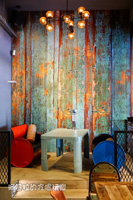 ▲室內的裝潢是美式輕工業的設計風格,可以看到一般餐廳比較沒有的燈飾和桌椅。