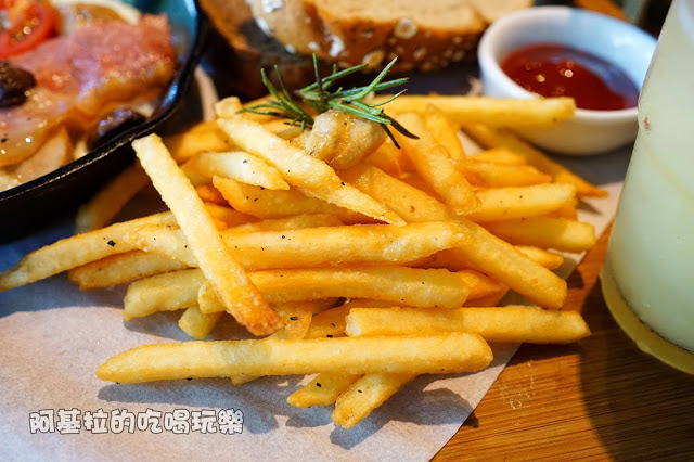 ▲薯條是使用氣炸鍋製作,所以比較沒有油膩感,對身體也比較健康,而調味的部份是使用橄欖油、大蒜、迷迭香、鹽巴,吃起來特別酥脆可口,用鼻子呼氣的時候,還聞得到大蒜的香味,和一般的炸薯條截然不同,而且份量還不少。