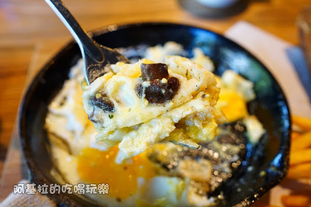 ▲滑潤的雞蛋夾帶著軟嫩的蘑菇,吃起來有雙重的香味,多虧鐵鍋的保溫效果,口感和味道一直保持在最佳狀態。