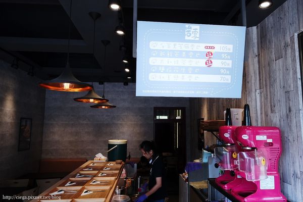 走進岩雪就可以看見兩台桃紅色的刨冰機,與店內的輕工業風設計搭在一起超俏皮的