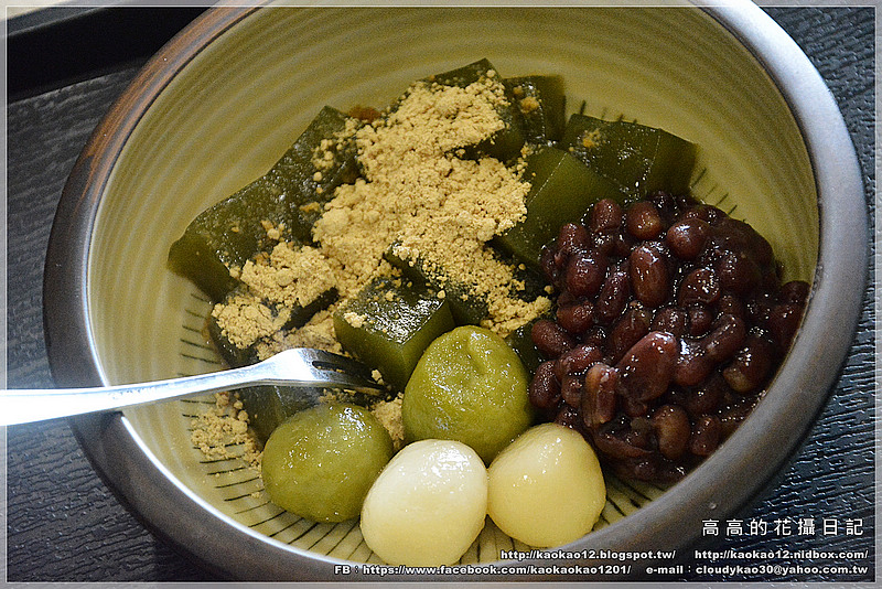 Q彈的抹茶厥餅很好吃,然後再搭配香氣很優雅的黃豆粉和黑糖蜜,