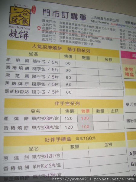 門市訂購單