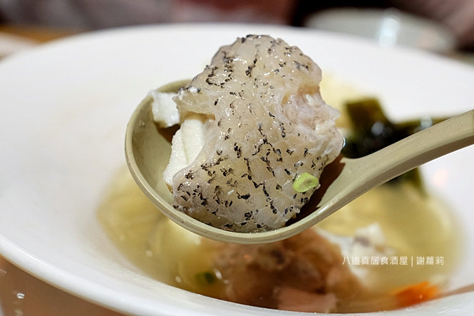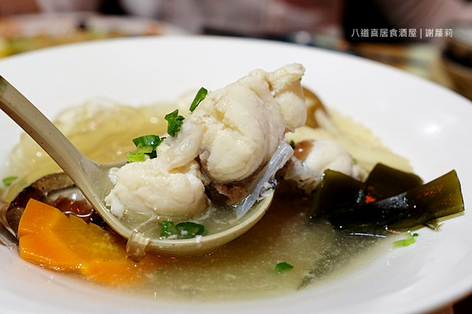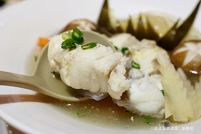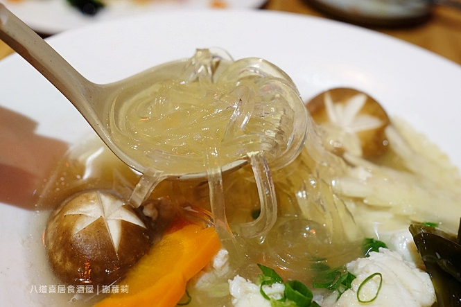 蘊含著魚肉鮮味,裡面加了日本冬粉、薑片、時蔬與香菇,因為不加過多調味,所以是較無負擔的滋味,自己本身則愛上那龍膽石斑魚的細緻肉質,連彈性也叫人印像深刻。