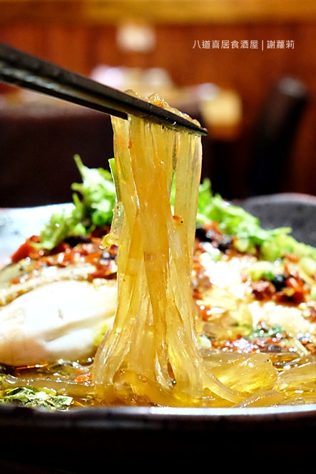 而底下舖疊的,是比較具有Q彈口感、也不易煮爛的日本冬粉,它充份吸收飽了泡椒精華,吃來相當夠味,當天吃到這道時已經很有飽足感了,後來忍不住請店家幫忙打包,帶回家繼續回味它的絕妙之處,甚至還擄獲了全家人的味蕾,大家一致都說超好吃。