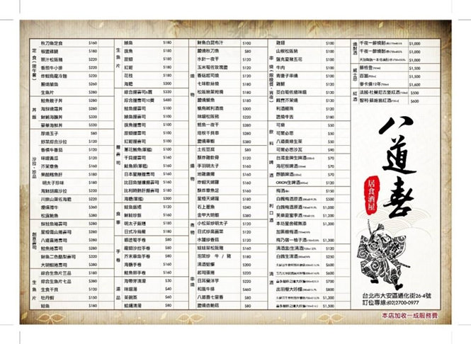這次造訪八道喜,主要是來嚐鮮新推出的菜色,其中還交雜著幾道店家比較受歡迎、也是人氣較高的餐點,如果愛喝酒的朋友,冰箱中也有不少酒品及飲料,立馬就來看看,今天品嚐了什麼好料吧!:)