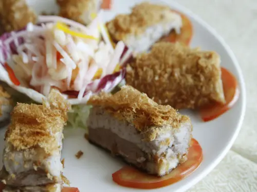 ↑百花釀油條。簡單來說就是在油條內鑲入蝦漿、魚漿之類的料理。