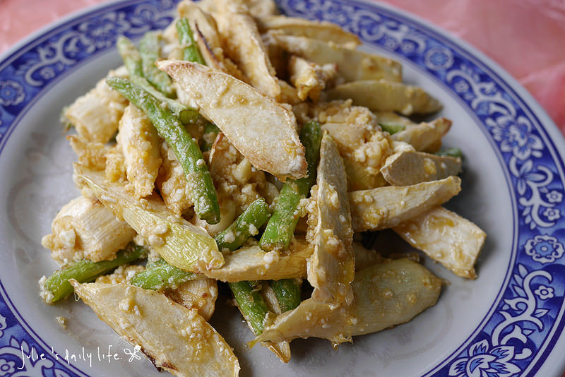 ↑鹹蛋的鹹香引出筊白筍本身的甜度,四季豆也很脆口。