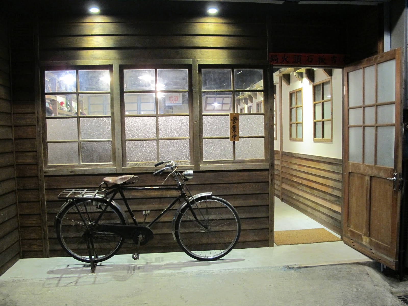 木造裝潢搭上門口處這台腳踏車彷彿掉入時光50~60年代