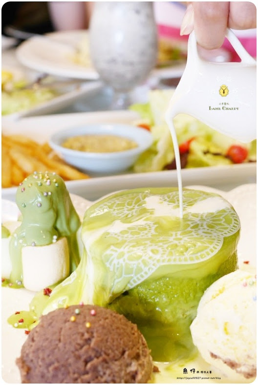 【台中.西屯】小羊夏比 Lamb Charpy 義式料理/焗烤/甜點/厚鬆餅。餐點美味、份量多,宇治抹茶碰撞金時紅豆泥厚鬆餅走花樣蕾絲路線!!