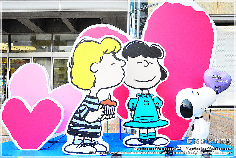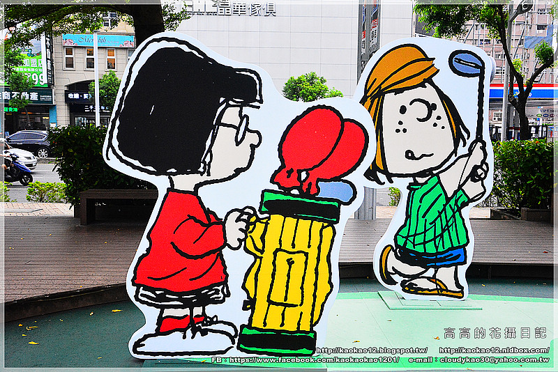 在漢神巨蛋一樓戶外廣場處也擺設了好多史努比與其友人的公仔及立體畫板,
