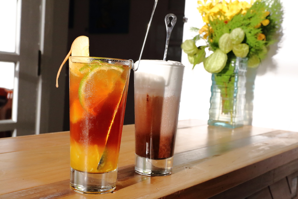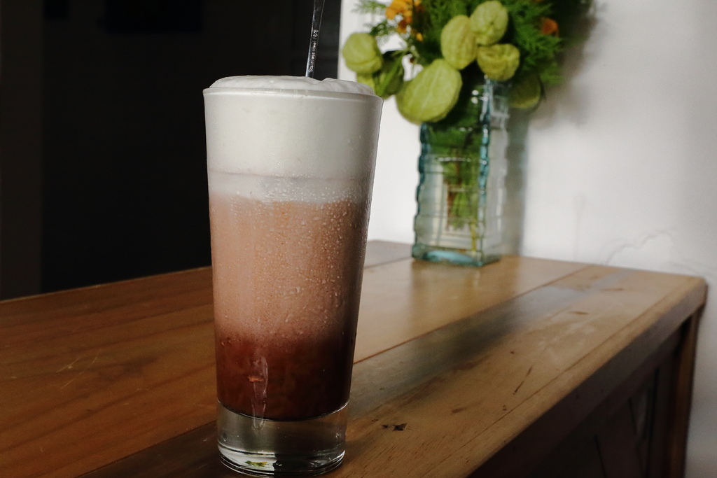 一般市售的水果茶很少是用水果去熬煮,最底層是用真正鳳梨果肉加多種水果細細熬煮後而成,有著清新