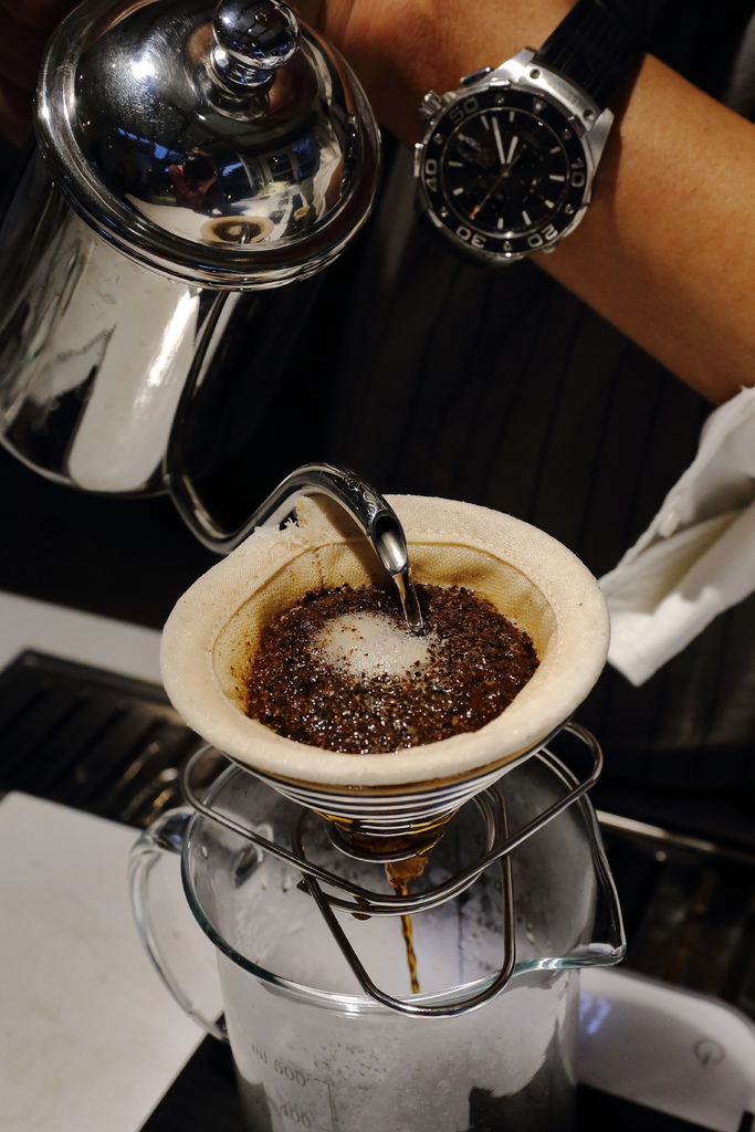 老闆手沖咖啡時認真專注的神情,仿佛他就是為咖啡而生的!