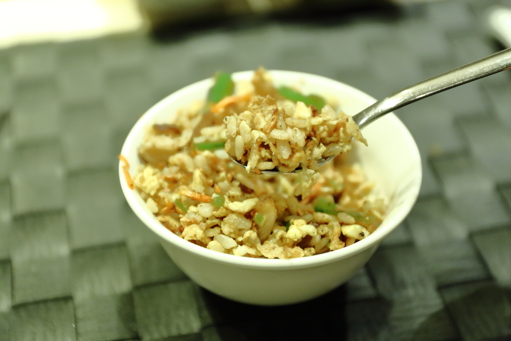 炒飯看起來顆顆分明,迫不及待嚐一口,非常鬆軟但不油膩,香甜多汁又爽口,顛覆我對炒飯油味、米硬、乾澀的印象