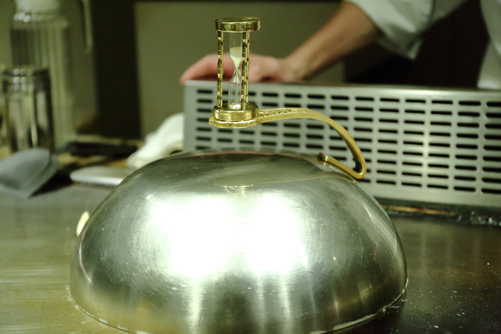 還要蓋上蓋子用沙漏讀秒,讓鮑魚吸收了昆布的香氣