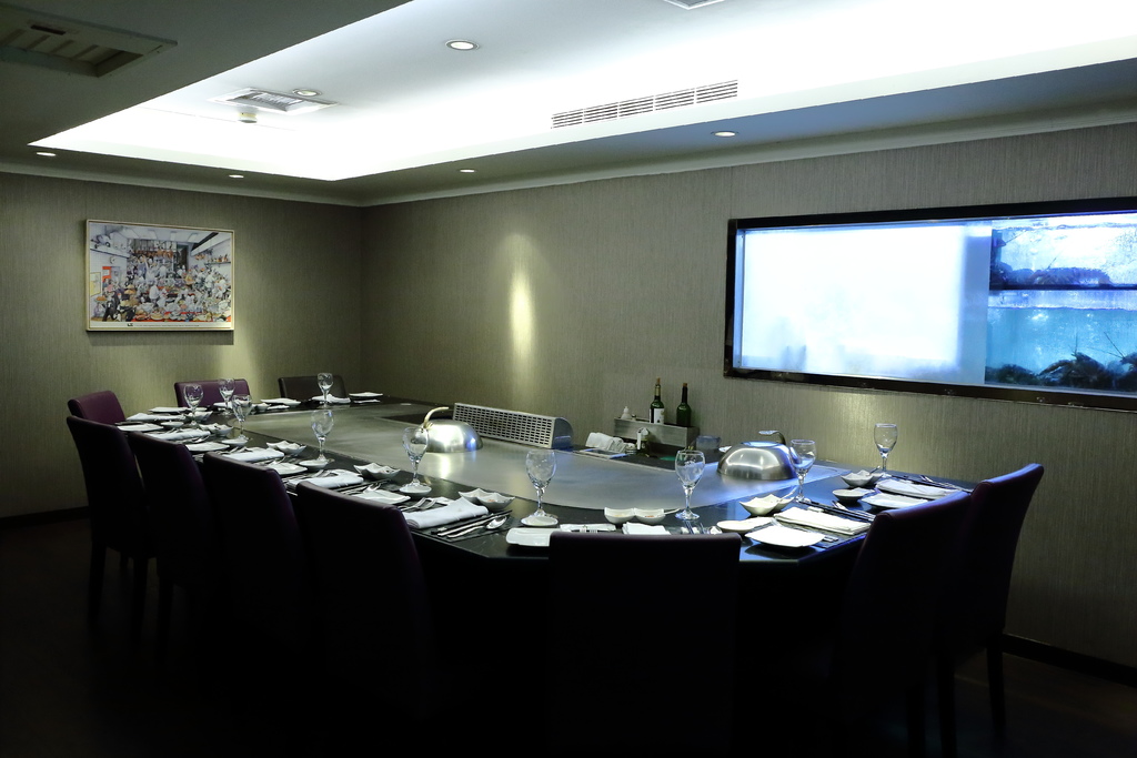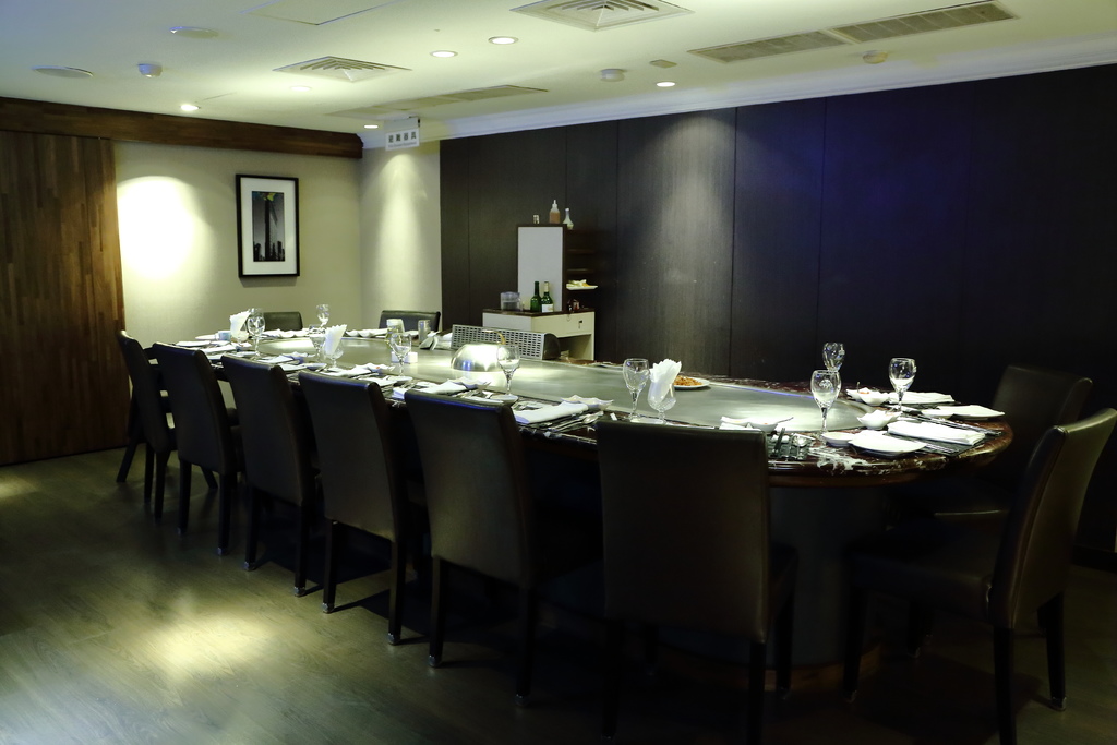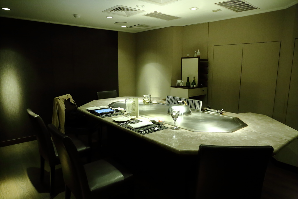『犇』鐵板燒隱藏於台北巷弄內,外觀低調典雅、不失尊貴,內部裝潢挺氣派的,有開放式空間,也有包廂式煎檯,整體空間很大,在裡面用餐非常舒適