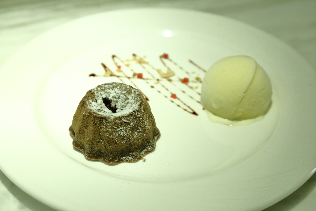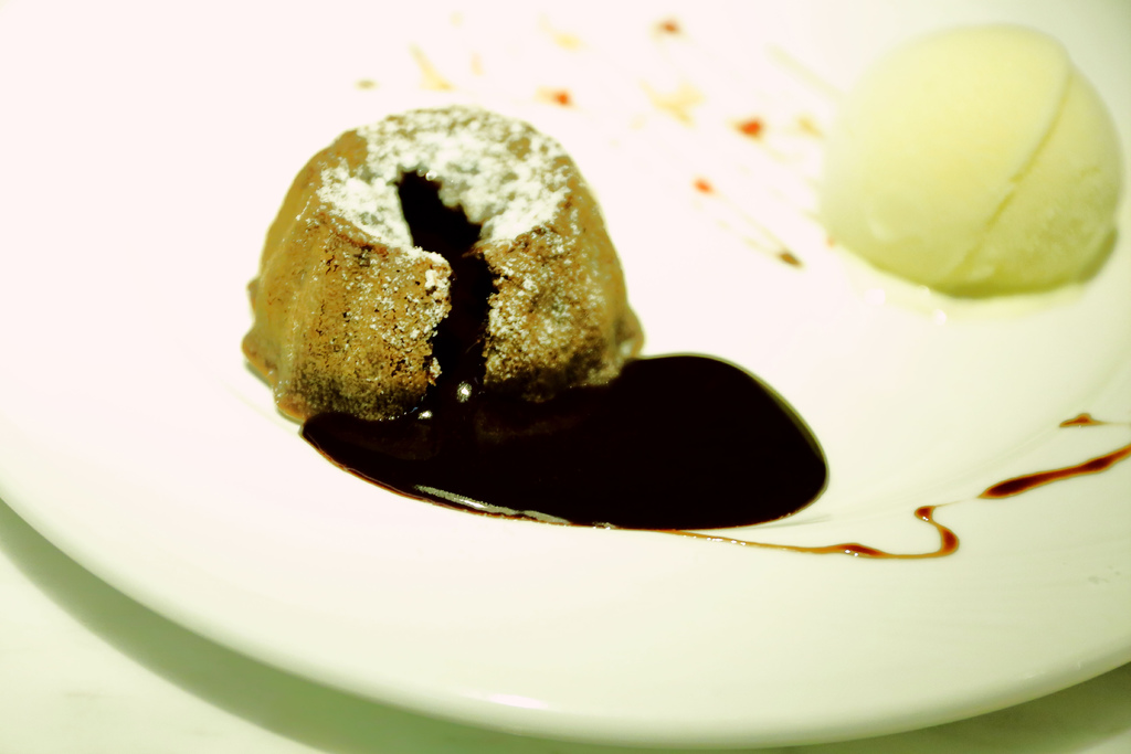 火山熔岩巧克力,一切開,融化的巧克力會像熔岩一樣冒著熱氣緩緩噴出,再搭上旁邊的冰淇淋,冰火交融,吃進嘴裡絕對會有意想不到的驚奇口感!