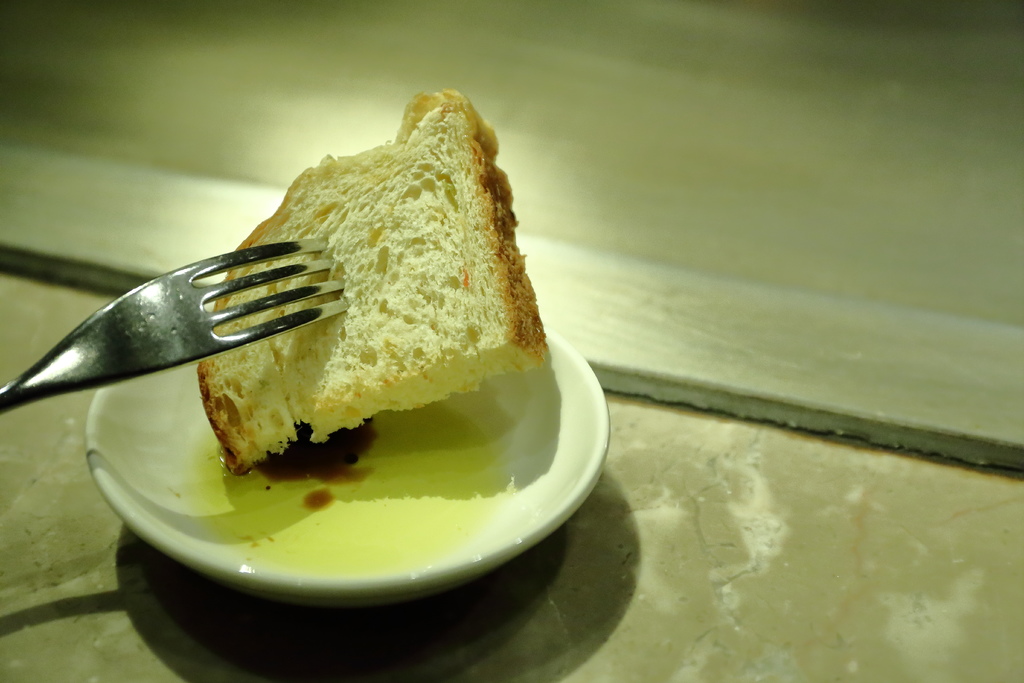 歐式麵包外殼硬脆,內層扎實有嚼勁,沾著這種頂級橄欖油吃,頰齒留香啊
