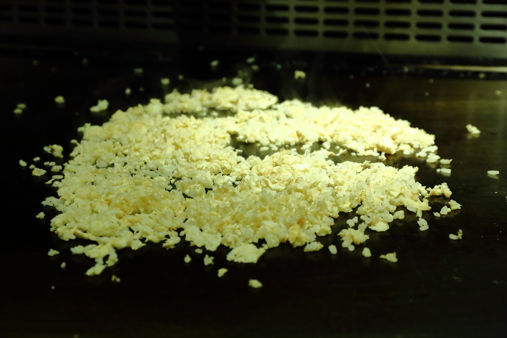 鐵板燒的炒飯絕對是一絕,蛋液包裹每一顆飯粒的鐵板炒飯