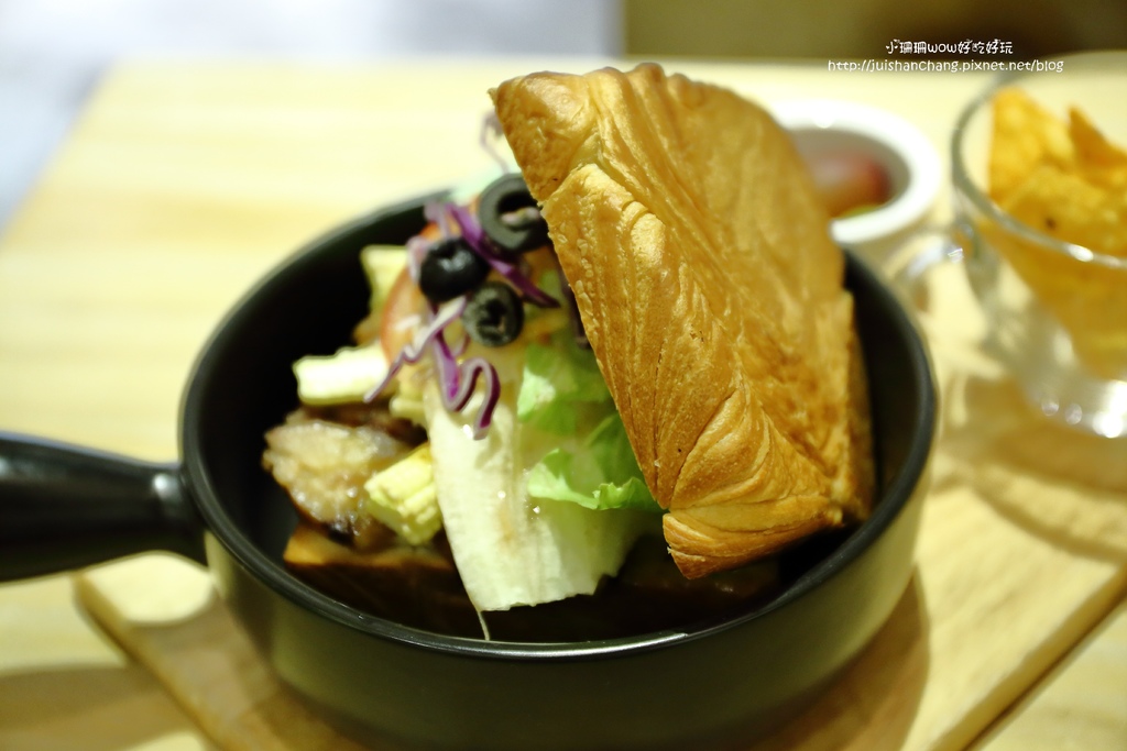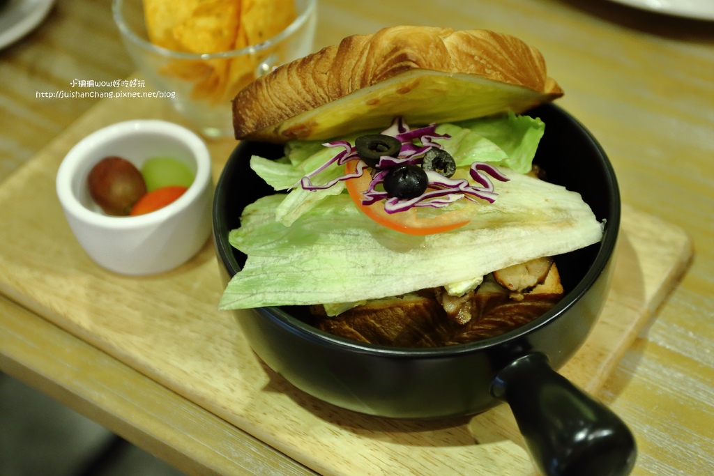 以前輕食吃完總是覺得空虛,但這兒是丹麥金磚麵包,口感整個都大大提升,外層烤的很酥脆,裡頭依然保有吐司的軟綿的口感,整體吃起來還不錯