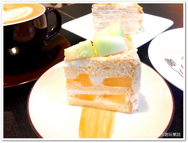 戚風蛋糕口感鬆軟,搭配上新鮮哈蜜瓜及滑順爽口的奶油,吃起來有淡淡的果香與輕柔口感很不錯