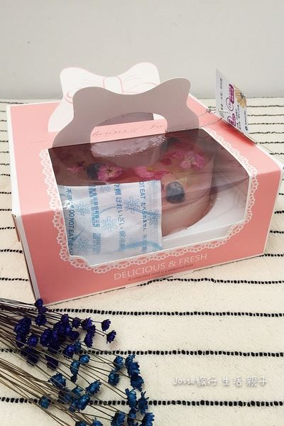 蛋糕旁也放置了二包保冷劑維持著蛋糕體的溫度。