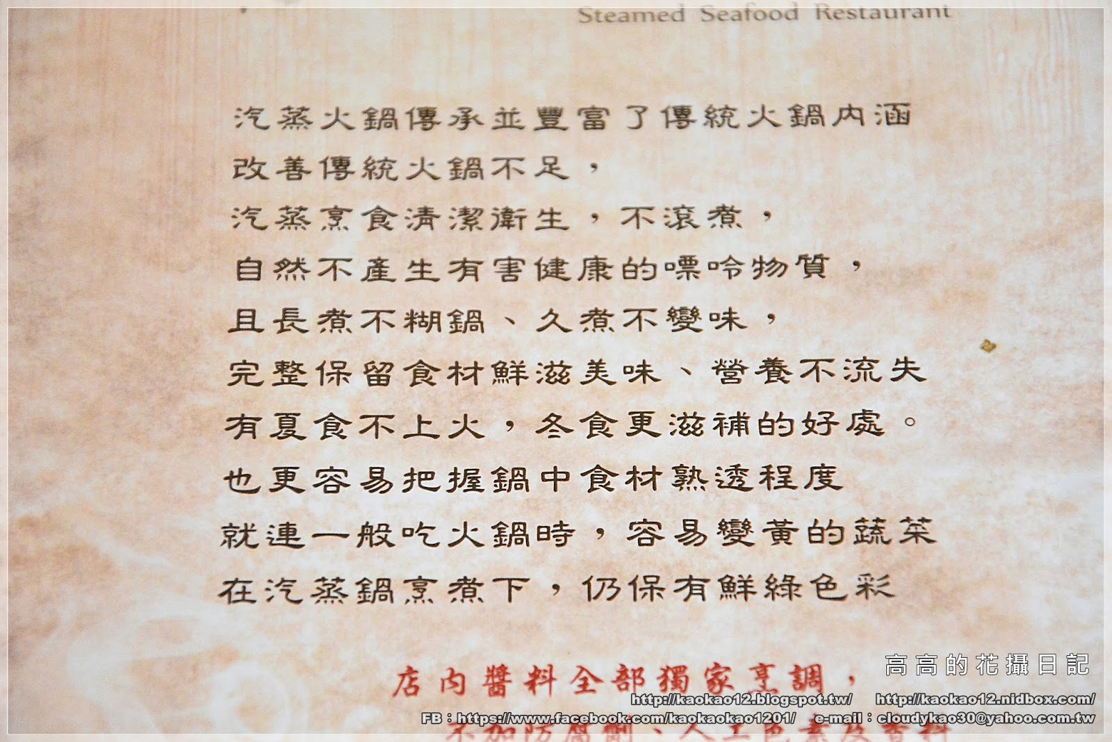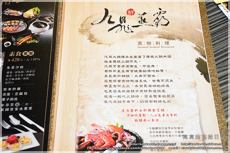 在九鼎蒸霸的菜單內頁及粉絲專頁上,都有對蒸鮮料理有詳細的介紹哦!