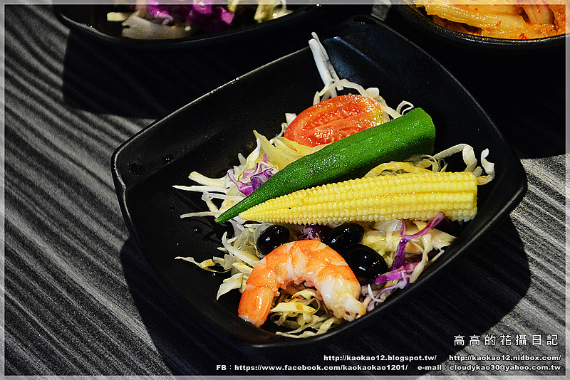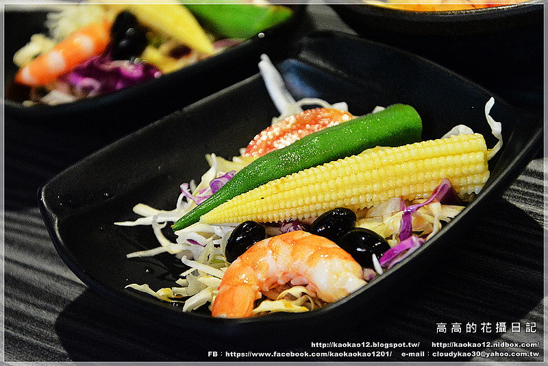 有口感爽脆的玉米筍、燙秋葵、小蕃茄再搭配一些生菜絲,