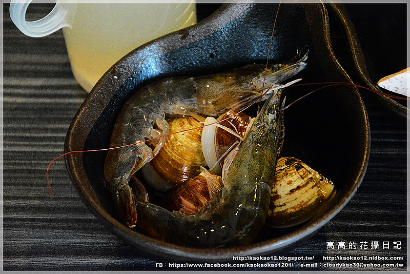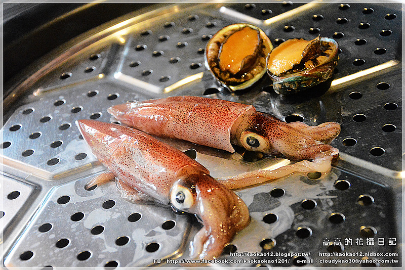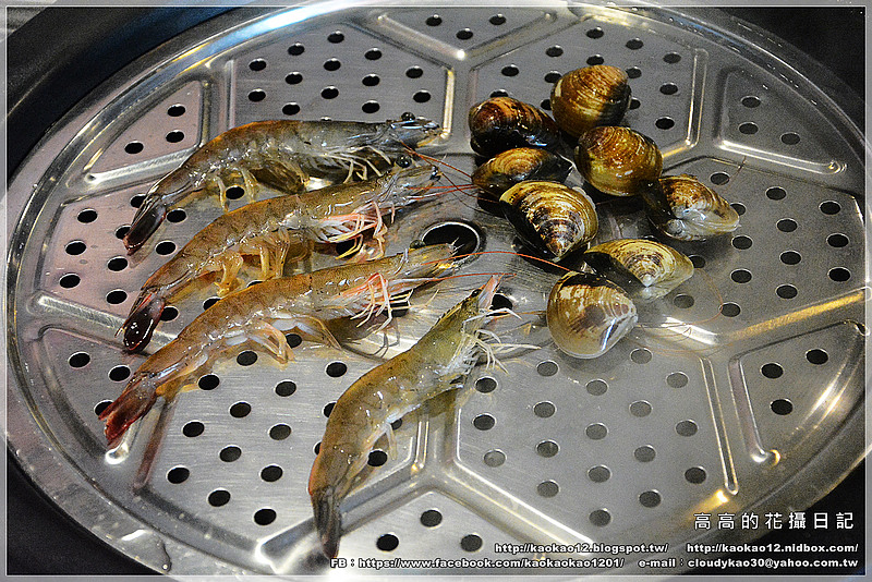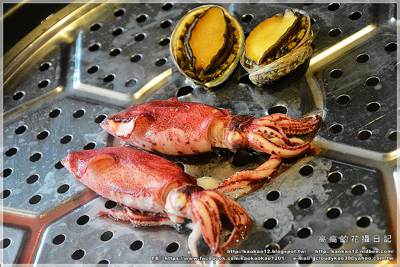 等到我們的鍋熱好後,服務人員第一個幫我們蒸煮的就是這份海鮮拼盤啦!