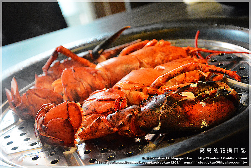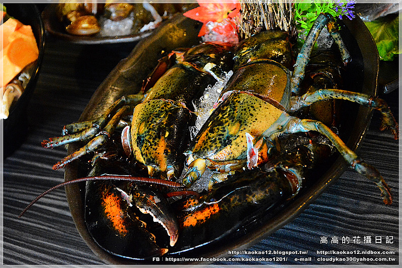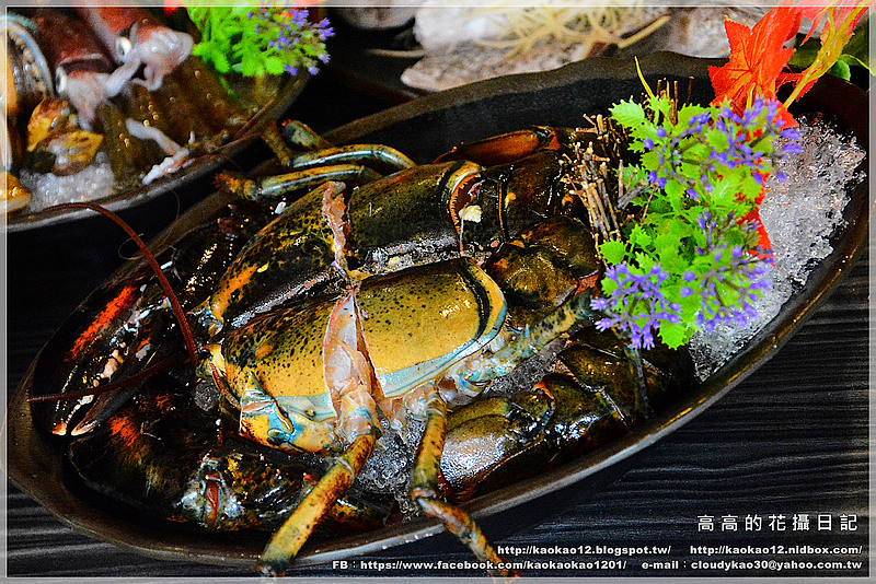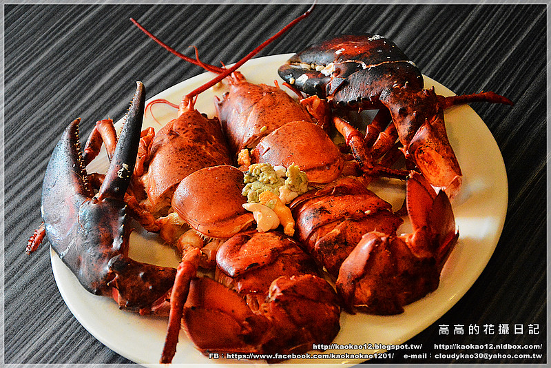 一隻波士頓龍蝦、海鮮拼盤一份(九孔鮑魚、白蝦、澎湖小卷、蛤蜊)、
