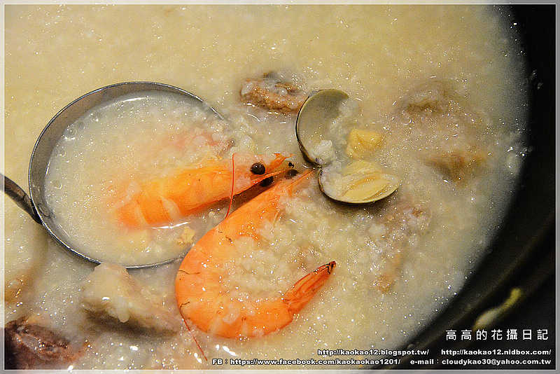 海鮮粥的食材有蛤蜊和白蝦。