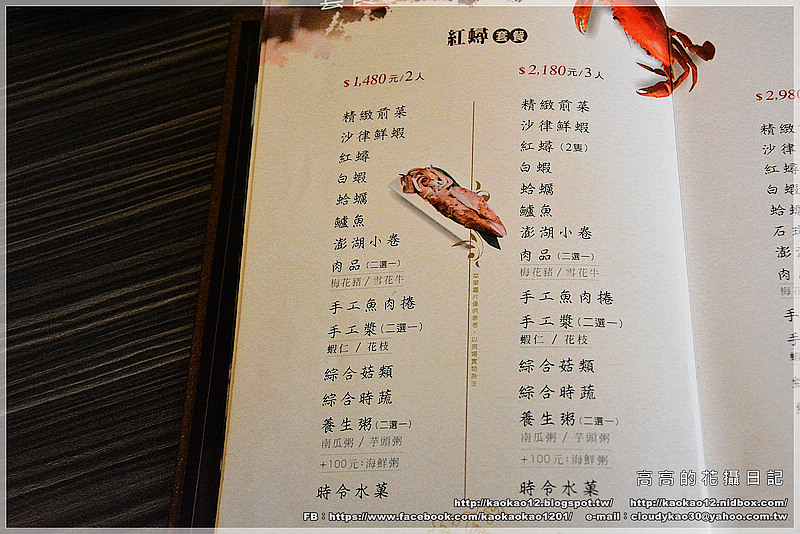 所以我有稍微看了一下菜單,只要點雙人紅蟳套餐(或以上價位)1480+10%,