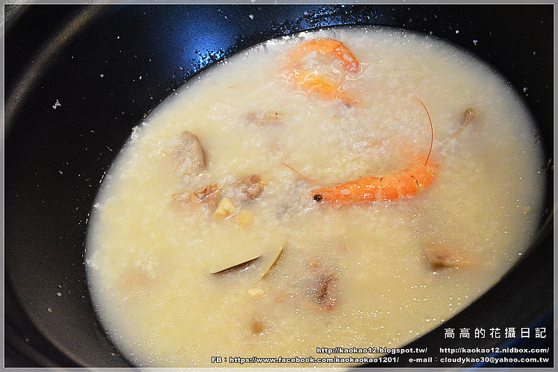 等剛剛的白蝦蛤蜊熟了後,再放入底下的這鍋粥中,