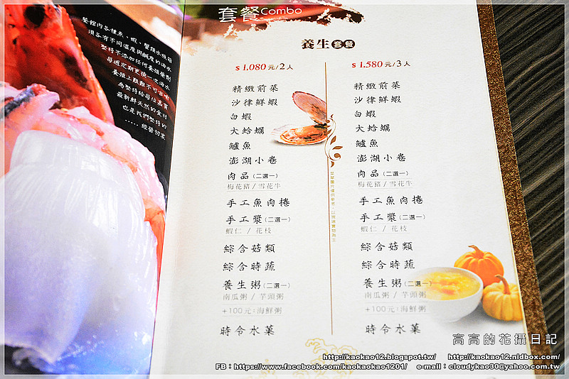 ㄗㄨ雙人的海鮮套餐從最便宜的有1080+10%的養生套餐,