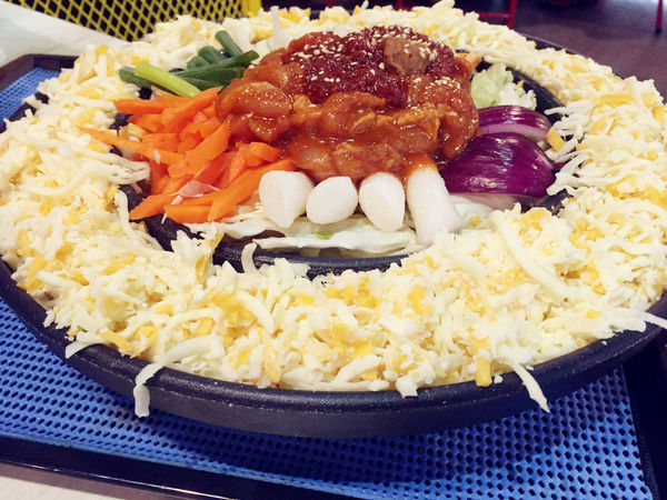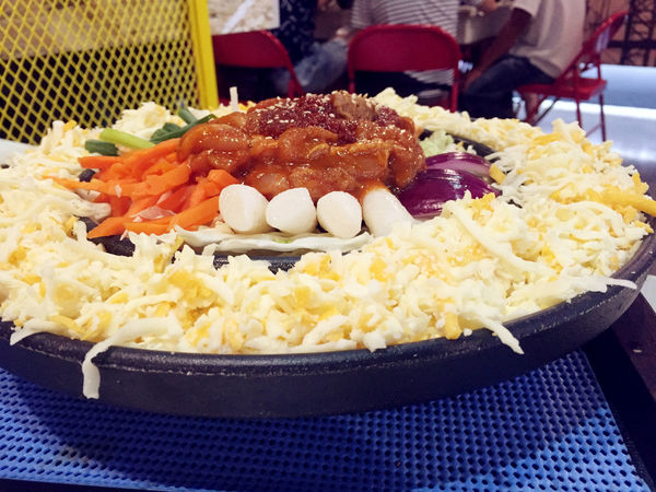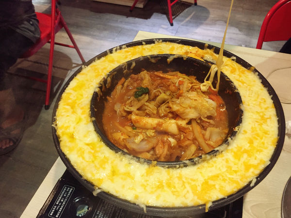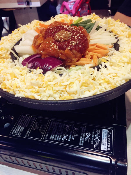 ♡今天所品嚐的是李光洙起司擂台炒雞雙人鍋,外圈是滿滿的起司圍繞著,真的很滿,滿到都很怕它掉出來XD