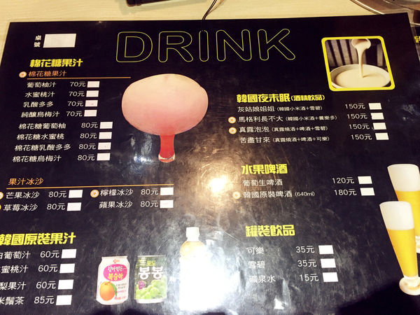 ♡飲品類的部份也很多樣化,有果汁也有酒品類,當然還有最可愛的棉花糖果汁飲系列