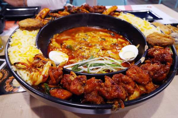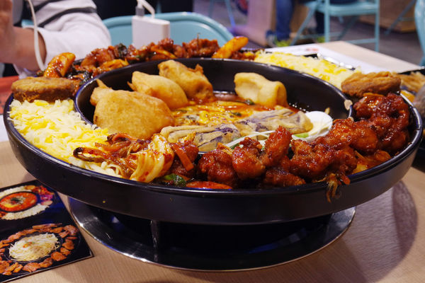 ♡內圈有多種炸物以及蛋,外圈則有辣炒雞丁和香濃起司以及雞肉可樂餅跟好吃的辣炒年糕