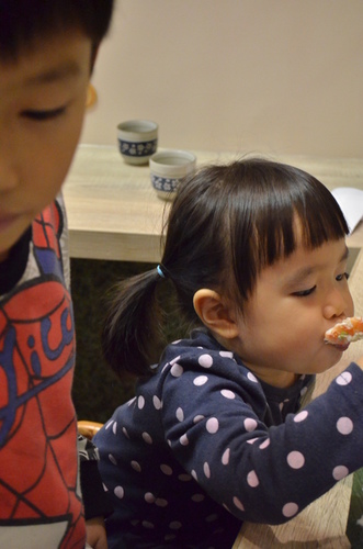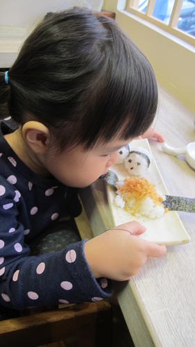 小朋友竟然也可以吃完!!醬汁跟魚鬆應該有很大功勞XD(鮭魚卵配飯也好好吃唷!!)